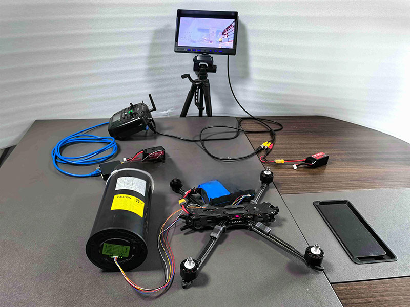 Zuntz optikoaren transmisio-sistemak denbora errealeko bideo-jario seguruak ahalbidetzen ditu interferentzia handiko inguruneetan, transmisioarekin 3 eta 30 km bitartekoak direnak, estaldurako eta luzerako eragiketetarako. Hiru osagai nagusik osatzen dute: zuntz bobina,
