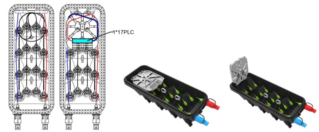 5. Barrualdea 1x2 FBT Splitter + 1x16 PLC zatitzailea edo 1x17 PLC zatitzailea ditu.